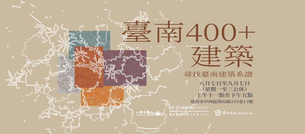 「臺南•400+•建築」室內的展覽也延後到跟著暑假台南建築師公會開展的「2025臺南建築三年展」一起響應,同時有「臺南市歷史街區及歷史老屋振興補助計畫」教育推廣類的補助支持,把整個系譜論述在小小的室內空間展出。