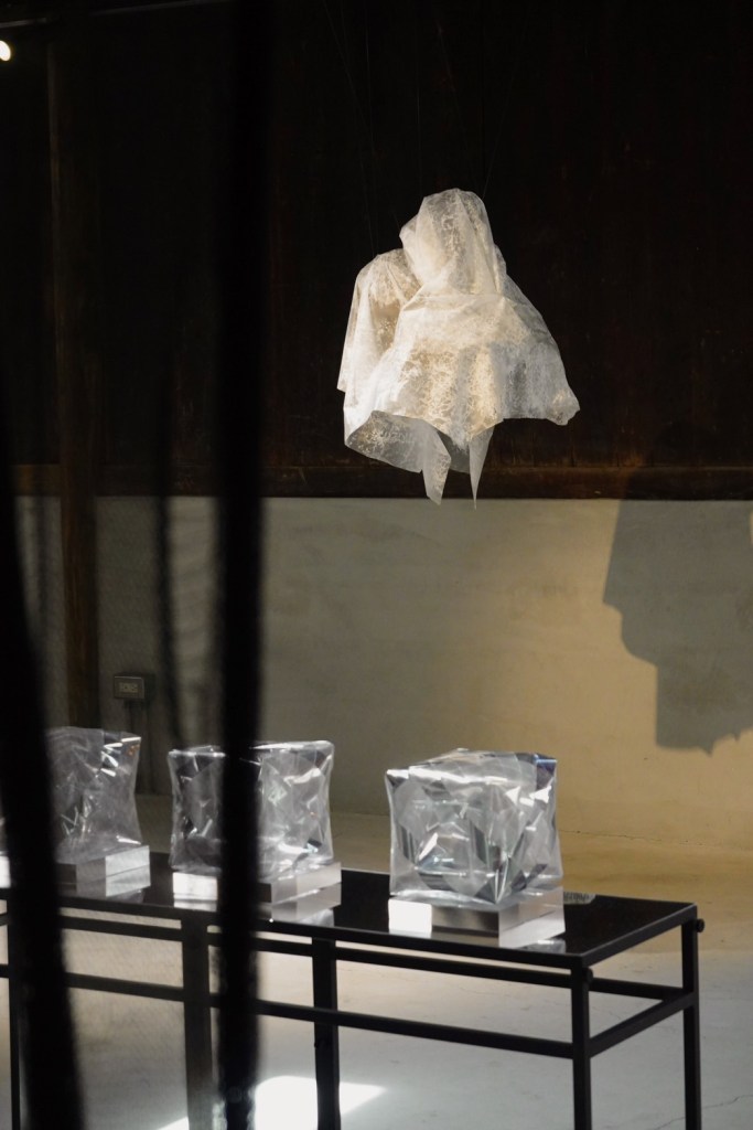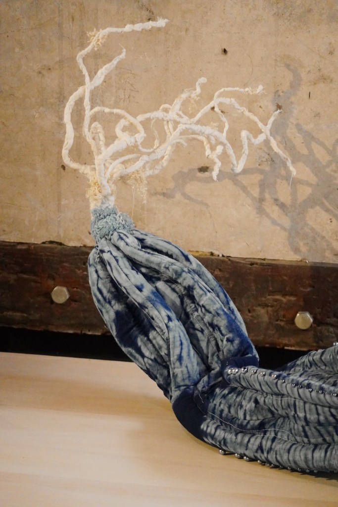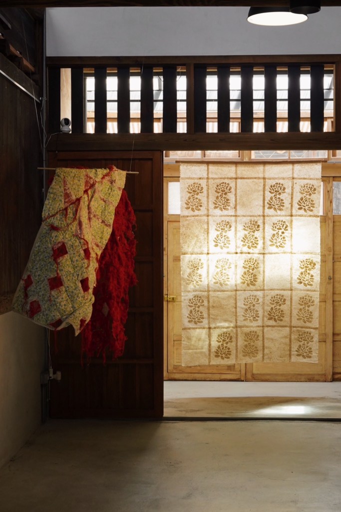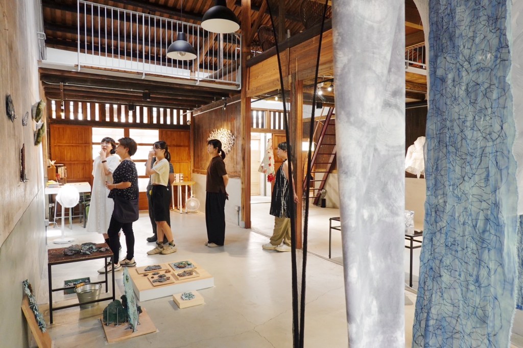 為期三天的展覽於今日開展囉!夏日的陽光悄悄地在空間裡移動,昨天學生們佈展時不同作品特質因空間光影變化引發了不一樣的漣漪,重新微調了作品展出的位置和方式,各自找到了屬於作品展現自己的角落。在烈日陽光同步展演中,纖維與人們欣喜交織!