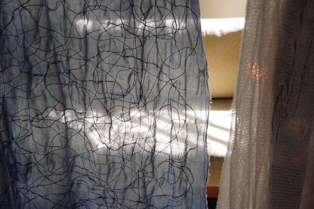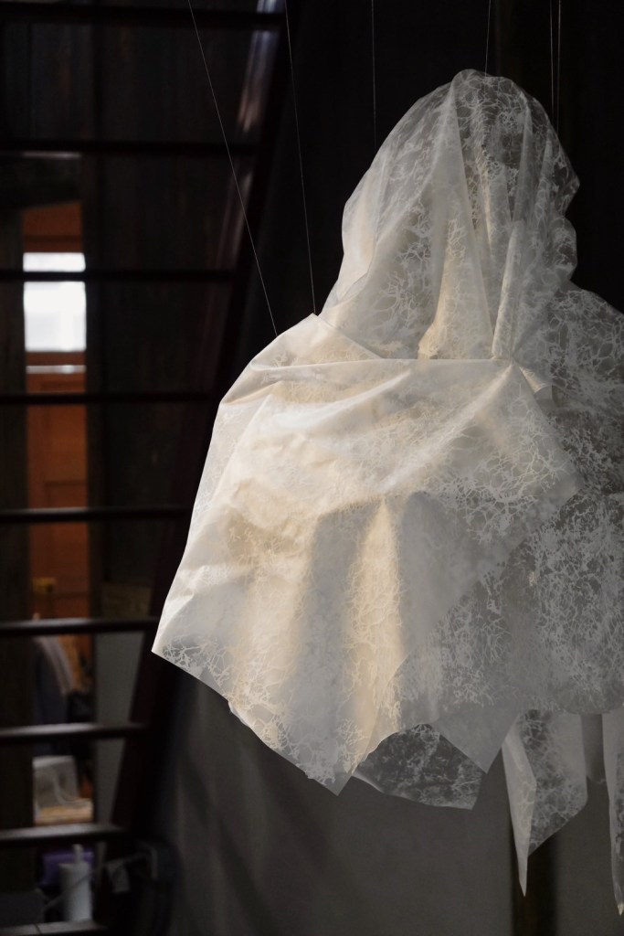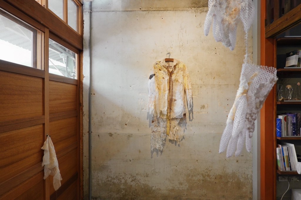 纖維,是穿衣時不小心扯破一角的裙襬、長年在衣櫃裡已帶有黃斑的白色襯衫。與我們如此貼身親近的布料,卻唯有產生綑綁、包覆、拉扯等互動,於面料上留下痕跡之時,我們才會再一次審視物的此在。
