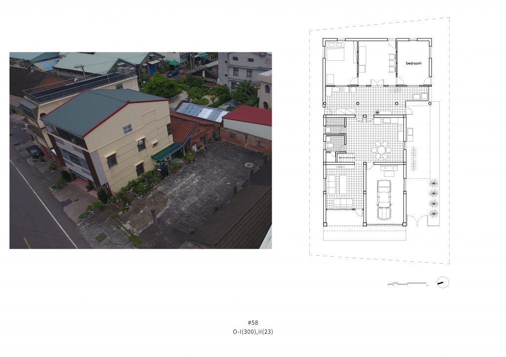 佔領院埕案例 #58 O-I(300),II(23) / 攝影與繪製:尤賀、吳其融、朱弘煜(圖像來源:《鄉村獨棟透天住宅及代溝空間類型研究》, 長短樹鄉村研究所, 2020)